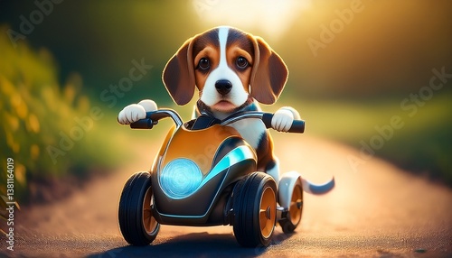 beagle, dog, pet, cartoon, fun, isolated, comic, happy, animal, mobile, roller, bike, illustration, drive, pretty, portrait, sitting, cute, sweet, drawing
