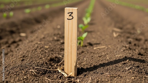 field, agriculture, marker, numbering, tracking, farming, dirtied, row, crop, germ bud, wooden, signs, numbered, plantation, cultivation, arable, designation, marking, plot, agrarian