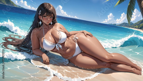beach, woman, bikini, white, sun, ocean, shoreline, summer, wave, sand, confident, standing, breeze, beauty, happiness, relaxation, tropical, resort, warm, glowing, sea, fashion, swimwear, leisure, nature, horizon, cloud, playful, bright, lifestyle, curve, joyful, water, break, vacation, daydream, holiday, tranquil, delightful, escape, scenic, picturesque, femininity, bodacious, fun, bodySHARE