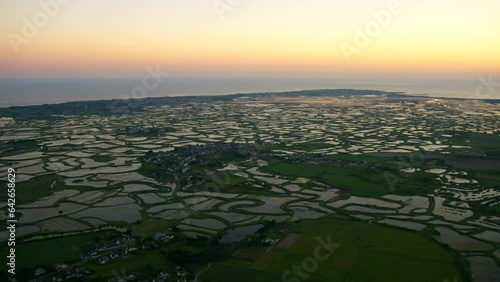 guérande, salt, mediaeval, loire, atlantic, france, beach, poitou, ocean, port, aerial, helicopter, drone