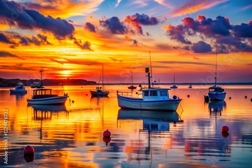 Metal Prints: Cape Cod Silhouette: Boats Moored at Sunset, Buzzards Bay