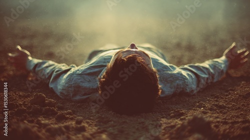 Pillows: Concept photo of a person lying prostrate on the ground, arms spread wide to the heavens, utterly surrendering to Gods will in the Garden.