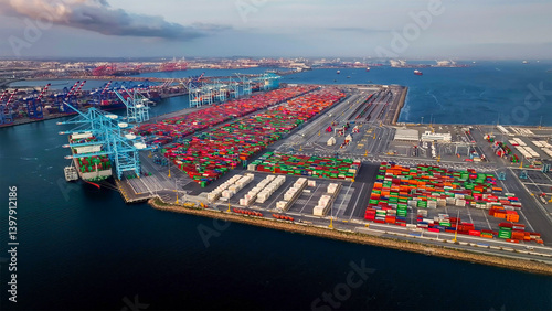 carrying, high, docked, container ship, loading, container, up high, drone, maritime, long beach, over, transportation, boat, business, berth, crane, logistic, pattern, basin, pier, cargo, harbor, export, stacking, perspective, shipment, california, commercial, ship, oakland, shape, tariff, shipping, industry, aerial, dock, los angeles, terminal, harbor, freightSHARE