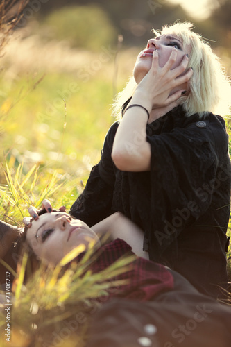 woman, goth, style, female, gothic, human, 2, girl, people, model, caucasian, young, 20s, outdoors, dramatic, grieved, grief, sad, emotional, mourn, bemoan, deplore, drama, tragedy, death, weeping, crying, emotion, pain, summer, eveningSHARE