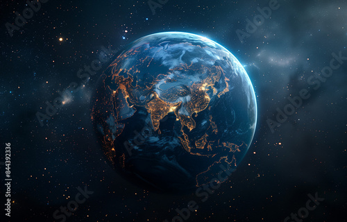 earth, science, astronomy, star, global, globe, map, planet, night, space, atmosphere, light, galaxy, planet earth, sunlight, cosmos, glowing, horizontal, sphere, stratosphere, universe, outer space, continent, fantasy, horizon, orbit, solar, sunbeam, copy space, three-dimensional, blue, sky, dark, sunset, illustration, geography, illuminated, no people, earth, background, environment, sea, view, color imageSHARE