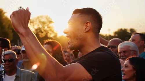person, stand, makeshift, stage, leading, crowd, chant, encouraging, energy, push, demonstration, activism, rally, march, dissent, resistance, strike, picket, solidarity, protestSHARE