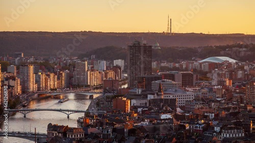 Shower Curtain: Time lapse of the cityscape of Liége, Belgium during a beautiful sunset