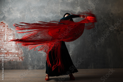 flamenco, woman, spanish, dance, dancing, studio, young, black, dancer, adult, performance, person, female, dress, spain, sensuality, red, latin, girl, expression, hispanic, posing, motion, motion blur, shawlSHARE