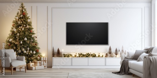christmas, living, room, television, interior, year, new, home, tree, smart, flat, wall, background, design, technology, house, table, white, lifestyle, furniture, holiday, floor, modern, set, apartment, sofa, television, lamp, carpet, wooden, electronic, domestic, plasma, appliance, armchair, screen, couch, entertainment, decorated, console, chaplet, trend, attractively, cosy, indoor, nobody, object, style, watching, wideSHARE