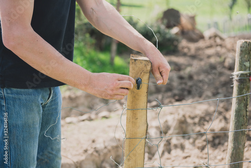 Agriculteur répare ses clotures