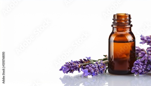 갈색 병에 담긴 오일과 라벤더 꽃이 자연스럽게 조화를 이루는 PPT 이미지