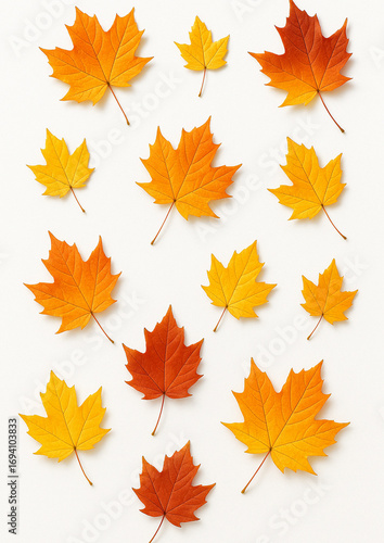 foliage, fall, leaf, maple, petiole, yellow, orange, red, gold, collection, vowel, background, white, nature, plant, deciduous, season, maple, nature, yellow, orange, red
