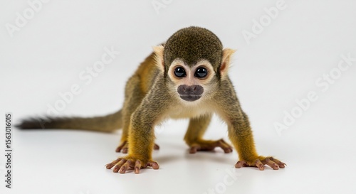小さな猿 白い背景 好奇心旺盛な瞳 愛らしい姿. AI Generated