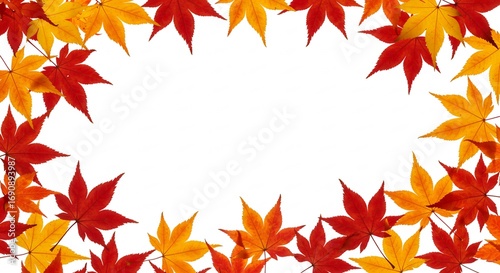 鮮やか紅葉 秋葉枠 白背景 美しい自然写真. AI Generated