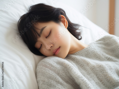 寝ている女性 穏やかな寝顔 ショートカット | Sleeping woman, calm sleeping face, short cut hair. Generative AI