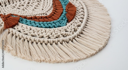 tapestry, decoration, handcraft, string, thread, cotton, cotton, bohemian, modern, design, art, craft, handcraft, crochet, fringe, natural, beige, brown, green, turquoise, colourful, woven, textured, pattern, semicircle, bedchamber, hall, gift, gift, gift, lovely, elegant, warmth