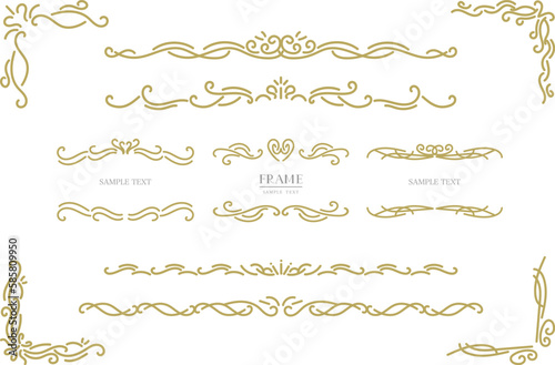 decoration, frame, illustration, material, gold, gold, line, luxurious, cut diamond, design, frame, ornament, decoration, line, curve, vector, corner, name, headline, variation, set