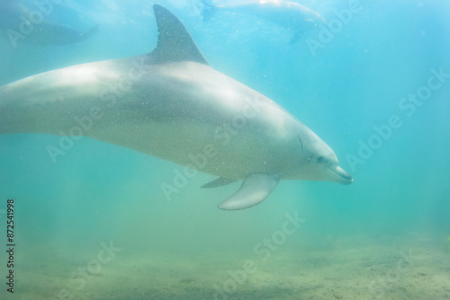 ドルフィンスイムで可愛いミナミハンドウイルカの群れが出迎えてくれた。白い子イルカもいる。 日本国石川県七尾市能登島 - 2017年5月5日。 北陸地方の石川県、能登半島の先端にある能登島(北緯37度07分、東経136度59分)は、ミナミハンドウイルカの地球上の北限の生息地として知られている。 Indian Ocean Bottlenose Dolphin (Tursiops aduncus)