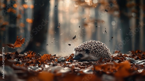 A hedge nestled amidst a forest's foliage, with fallen leaves scattered around it