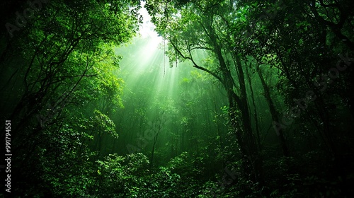 A lush forest brimming with numerous trees, bathed in dappled sunlight filtering through the foliage