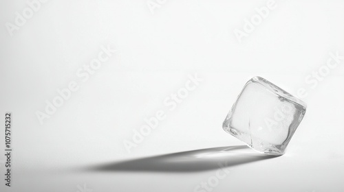 A transparent glass rests atop a white table, with a person's hand in shadow nearby