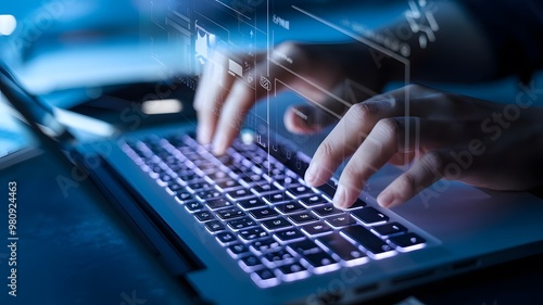 laptop, computer, keyboard, typing, hand, technology, digital, hologram, futuristic, modern, business, work, office, communication, website, coding, programming, design, software, datum, network, online, web, development, automation, future, progress, growth, success, entrepreneur, startup, tech