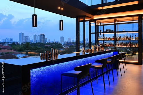 nightscape, modern, cocktail, lounge, bar, open air, highrise, date, drink, high class, glasses, night, lighting, urban