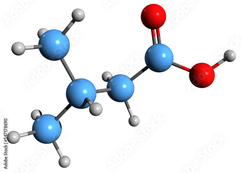 3D image of 3-Methylbutanoic acid skeletal formula - molecular chemical structure of Delphinic acid isolated on white background