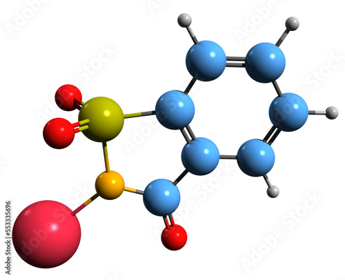 3D image of Saccharin sodium skeletal formula - molecular chemical structure of artificial sweetener isolated on white background