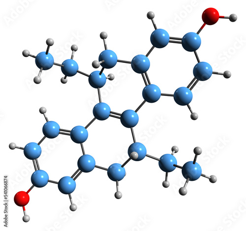 3D image of Tetrahydrochrysene skeletal formula - molecular chemical structure of steroid-like nonsteroidal estrogen isolated on white background