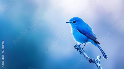 A bluebird atop a tree's twig against a blue backdrop of sky and clouds