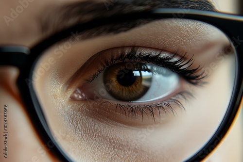 A close up of a person's eye through a magnifying glass