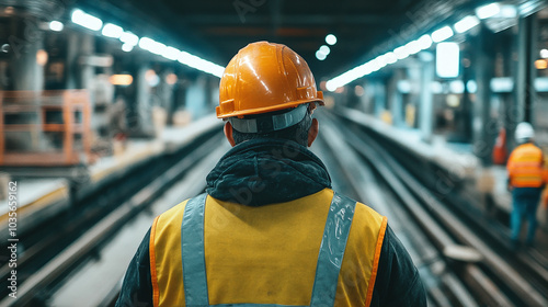 construction, men at work, tunnel, safety, helmet, vest, underground, infrastructure, work, industrial, engineering, labor, team, equipment, orange, reflective, sharpened, dim, lighting, worksite, railway, urban, project, industry, architecture, manual, maintenance, transportation, progress, machinery