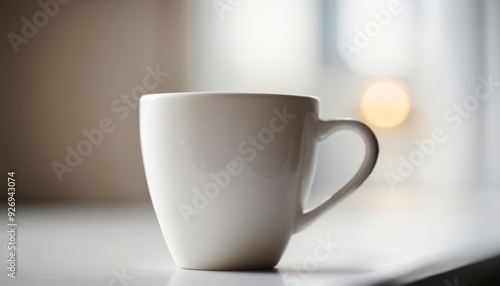 cup, background, ceramic, mug, handle, smooth, window, table, minimalist, still life, hot drink, simplicity, light, white, blurred, surface, clean, glossy