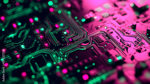 pink, green, illuminated, glowing, connection, design, futuristic, abstract, high technology, modern, three-dimensional, vibrant, visual, structure, electric, smooth, artistic, aesthetic, contrast, gradient, depth, technology, fantasy, dynamic, surreal, background, light, glow, digital artwork, network, board, electronic, computer, chips, motherboard, electronic, circuit board, macro, digital, engineering, pcb, processor