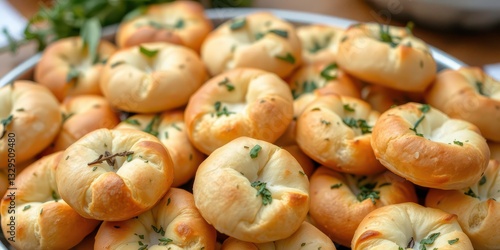 A Platter of Mini Artisanal Breads with Crisp Crusts and Fresh Herbs for Garnish