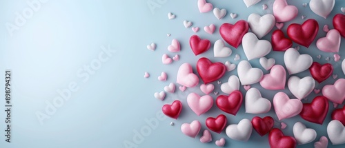 A sky filled with pink and white hearts against a blue backdrop Insert your message here