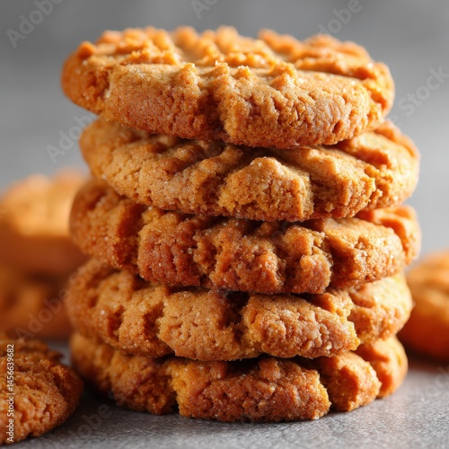 a stack of peanut butter cookies, crunchy texture,