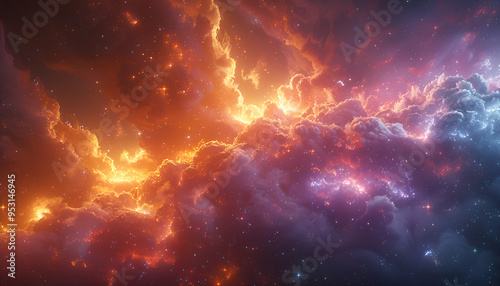 an abstract digital art piece that appears to be a depiction of a fiery explosion or fire.