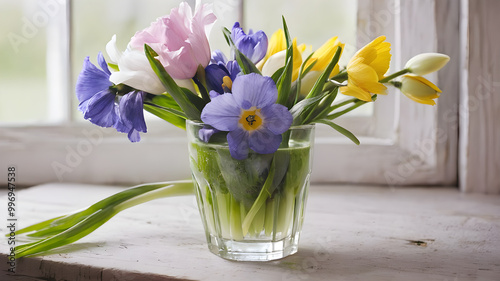 Artifical Intelligence generated vivid colorful Flowers in glass. AI generated image