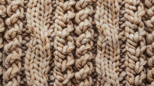 beige knitted fabric with thick braided patterns, showcasing intricate details and soft textures for a warm and cozy aesthetic