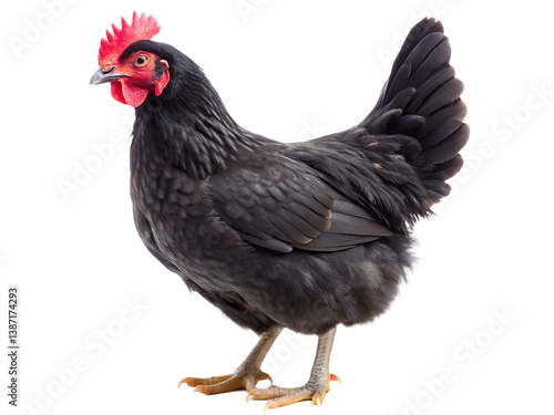 feather, isolated on white, standing, domesticated, hen, poultry, bird, domestic, isolated, animal, black, chicken, farm animal, farm, breast, farming, month, signs, single, vertebrate, wing, cut-out, meat, rustic, agricultural, domestic animals, female, fowl, rural, studio, studio shot, 1, character, design, full-length, icon, nature, nobody, one animal, red, symbol, white background, agriculture, food, natural