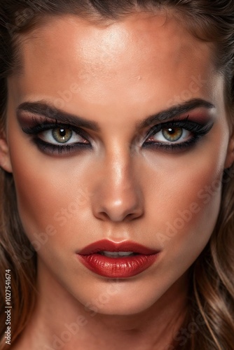 Bold and Intense Close-up Portrait of a Woman with Dramatic Makeup