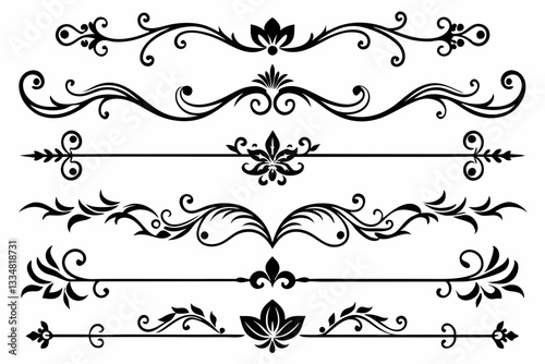 calligraphic ornamental divider collection line art silhouette vector illustration