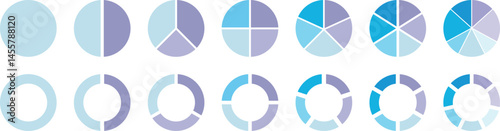 Circle graph infographic element. Infographic wheel segment or section parts. Circle division infographic icon set. Vector illustration