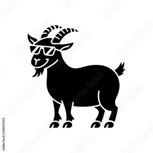 goat, sunglasses, cool, illustration, fun, stylish, animal, graphic, design, cartoon, trendy, mascot, symbol, funky, hipster, playful, unique, decorative, quirky, silhouette, modern, character, coolness, fashion, casual attire, edgy, humorous, collectable, creative, eye-catching