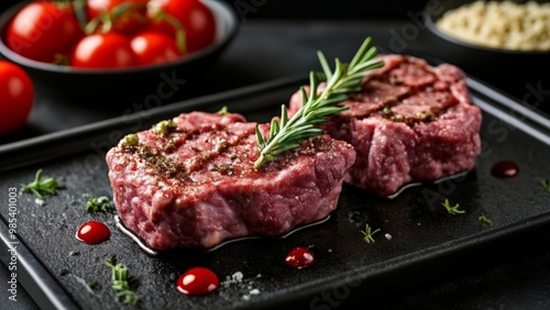bowl, presentation, fresh, dining, cookery, culinary, appetising, tomatoes, dinner, red meat, meal, food, herb, cooking, table, steak, sauce, garnish, kitchen, beef, savoury, delicious, plate, epicure