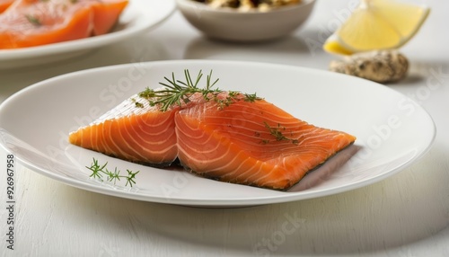 salmon, white plate, epicure, tabletop, cookery, seafood, dining table, accessing, dill, presentation, epicure, healthy, kitchen, tableware, food industry, receipe, fish, plate, garnish, lemon, table, food preparation, crockery, meal, dish, dining, fresh, food, eatery, cooking, zest, culinary, food photography