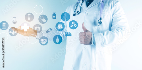 Digital healthcare and network connection on hologram modern virtual screen interface, medical technology and network concept.