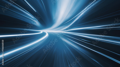 Digital image of light rays. Vector abstract, science, future, energy technology concept, stripes lines with blue light, speed and motion blur on dark blue background.